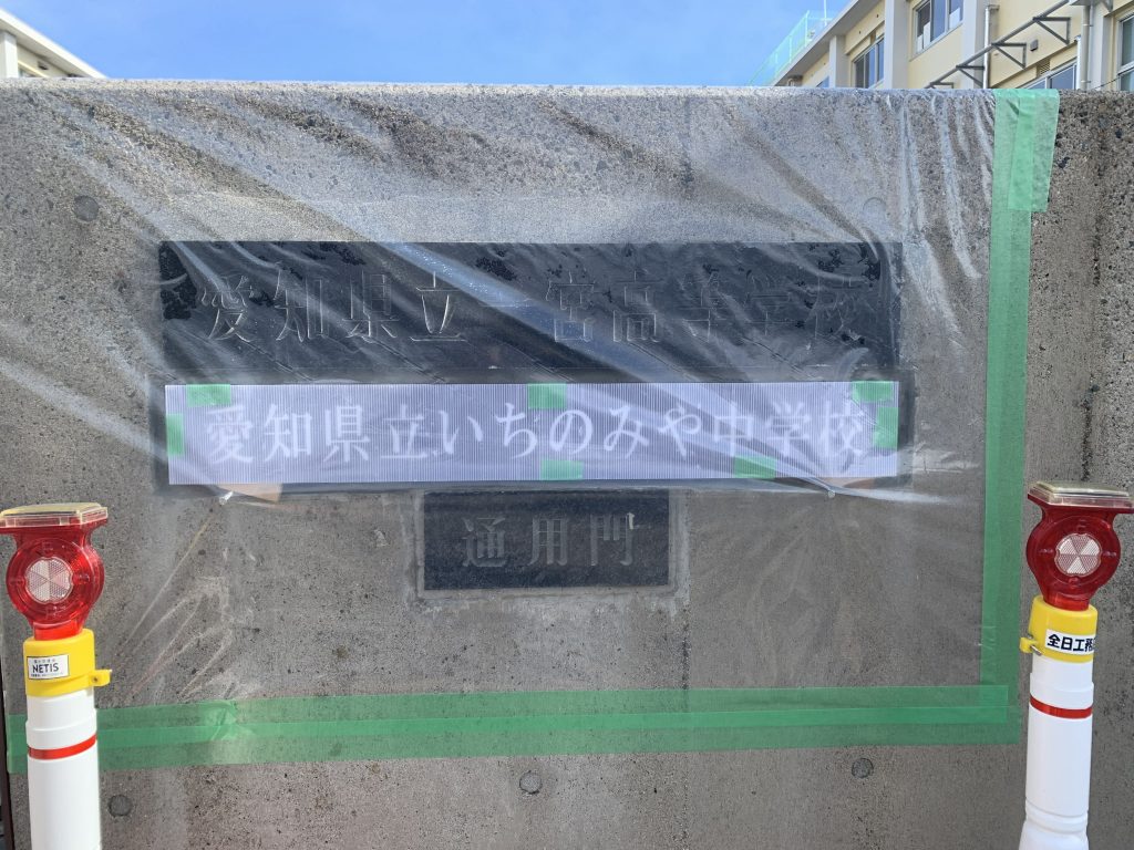 いちのみや中学校の生徒や職員が利用する門に、校銘板を設置しました。